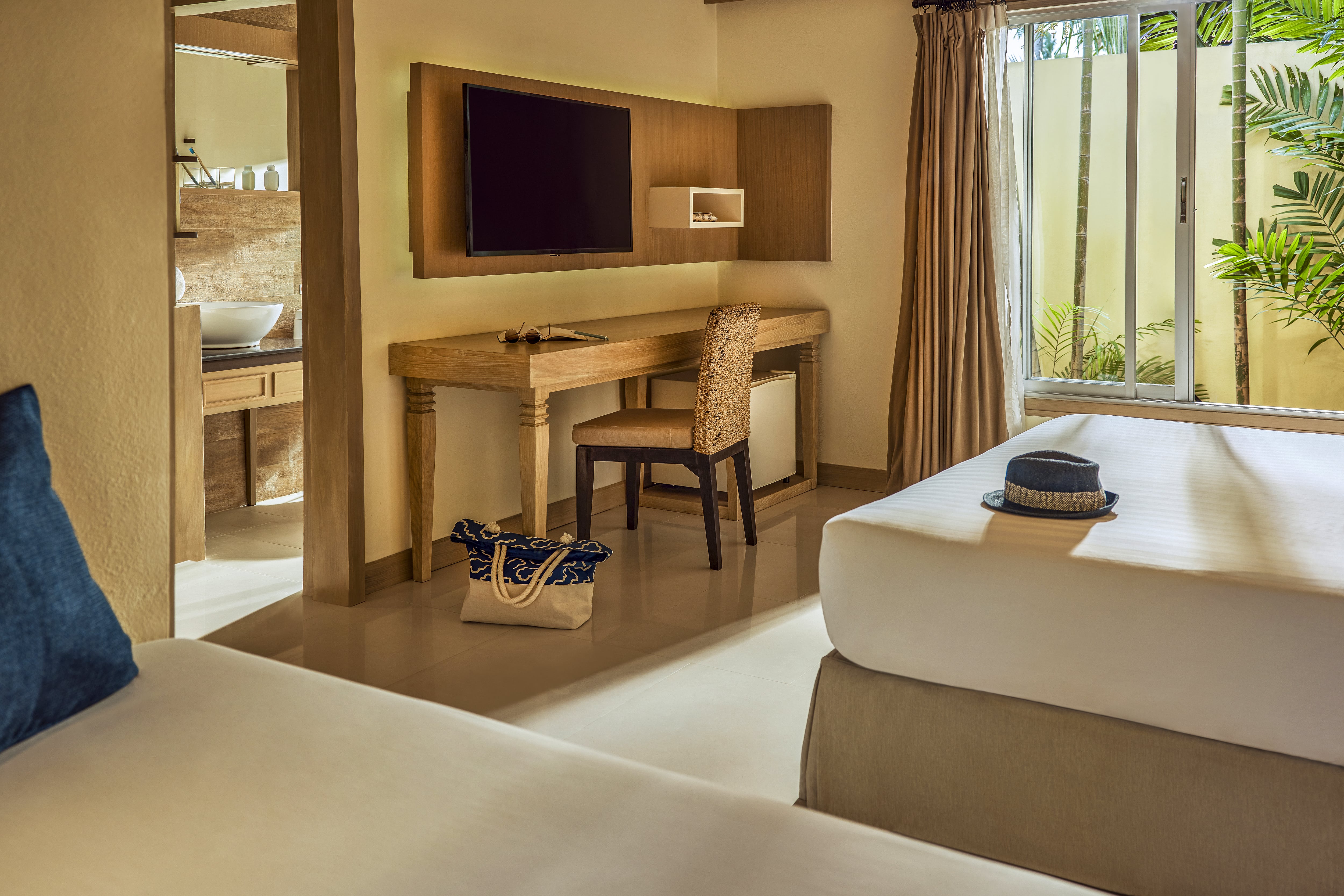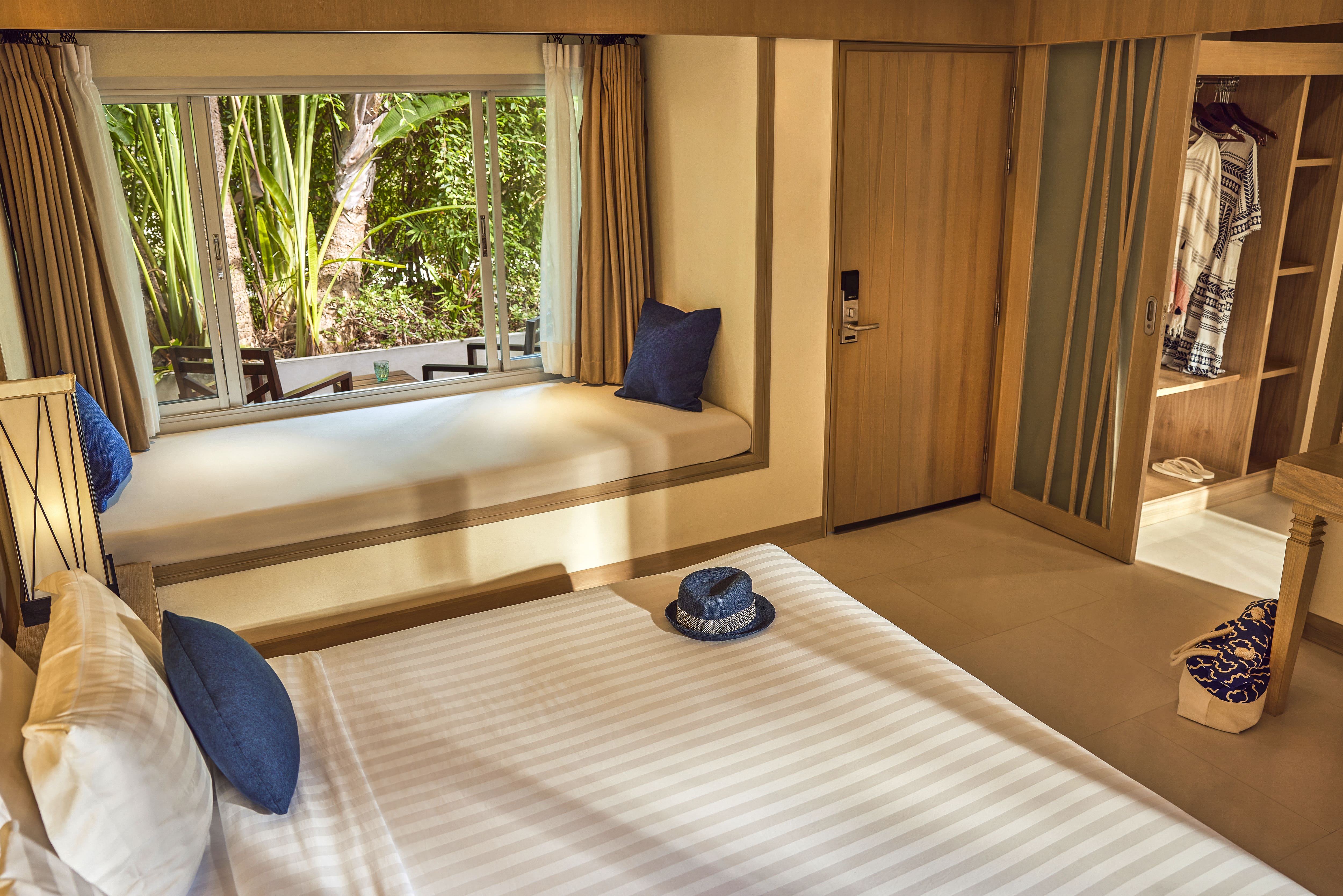 ภายใน ห้องพัก รีสอร์ท เกาะสมุย ประกอบด้วยห้องนั่งเล่นแยกเป็นสัดส่วน พร้อมโซฟาเบด เตียงคิงไซส์ เตียงอาบแดด เครื่องชงเอสเปรสโซ ห้องแต่งตัวแบบวอล์กอิน โทรทัศน์จอแบน และฝักบัวเรนชาวเวอร์ เพลิดเพลินกับมินิบาร์ฟรี และบริการอินเทอร์เน็ตไร้สาย (Wi-Fi) ฟรีตลอดการเข้าพัก