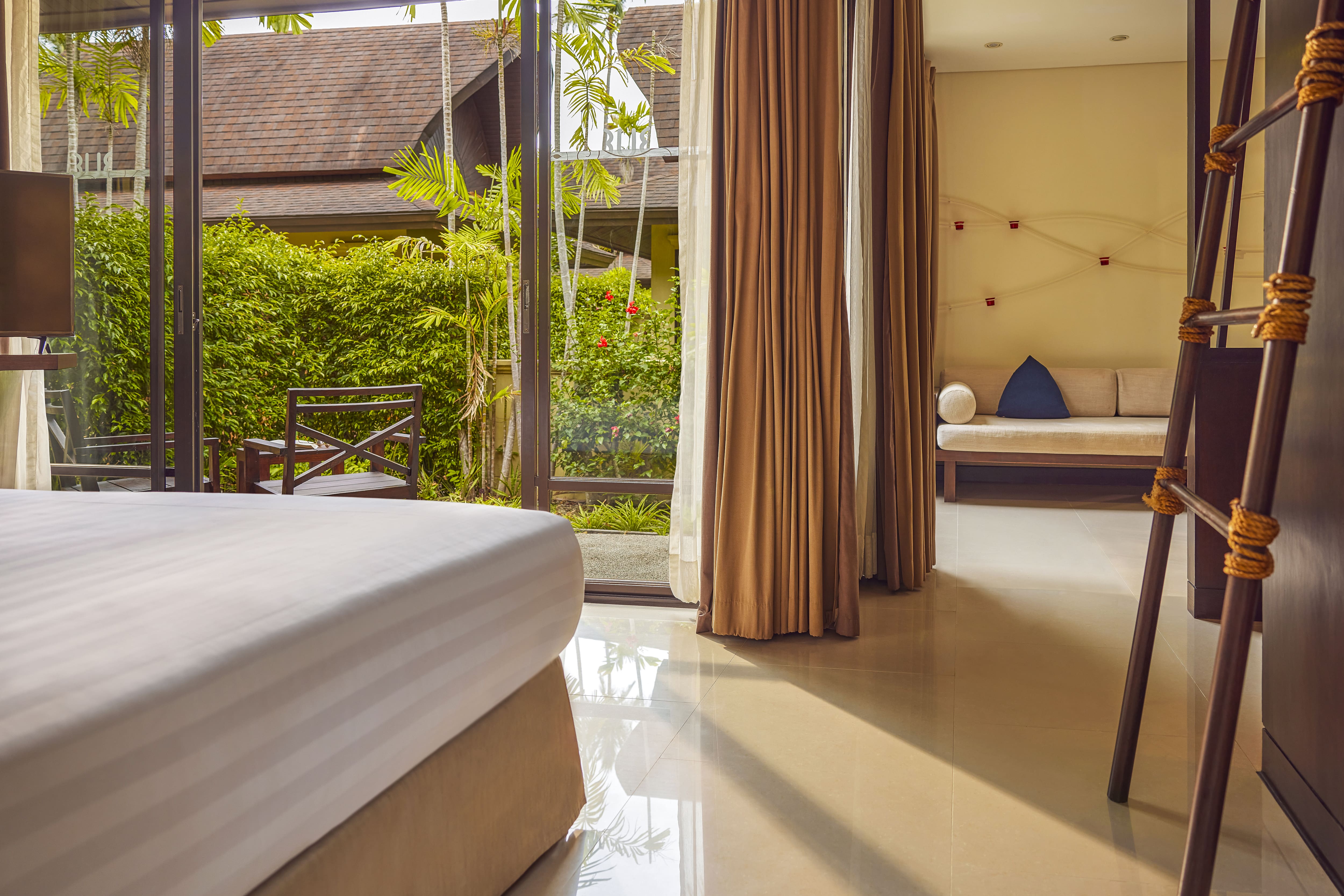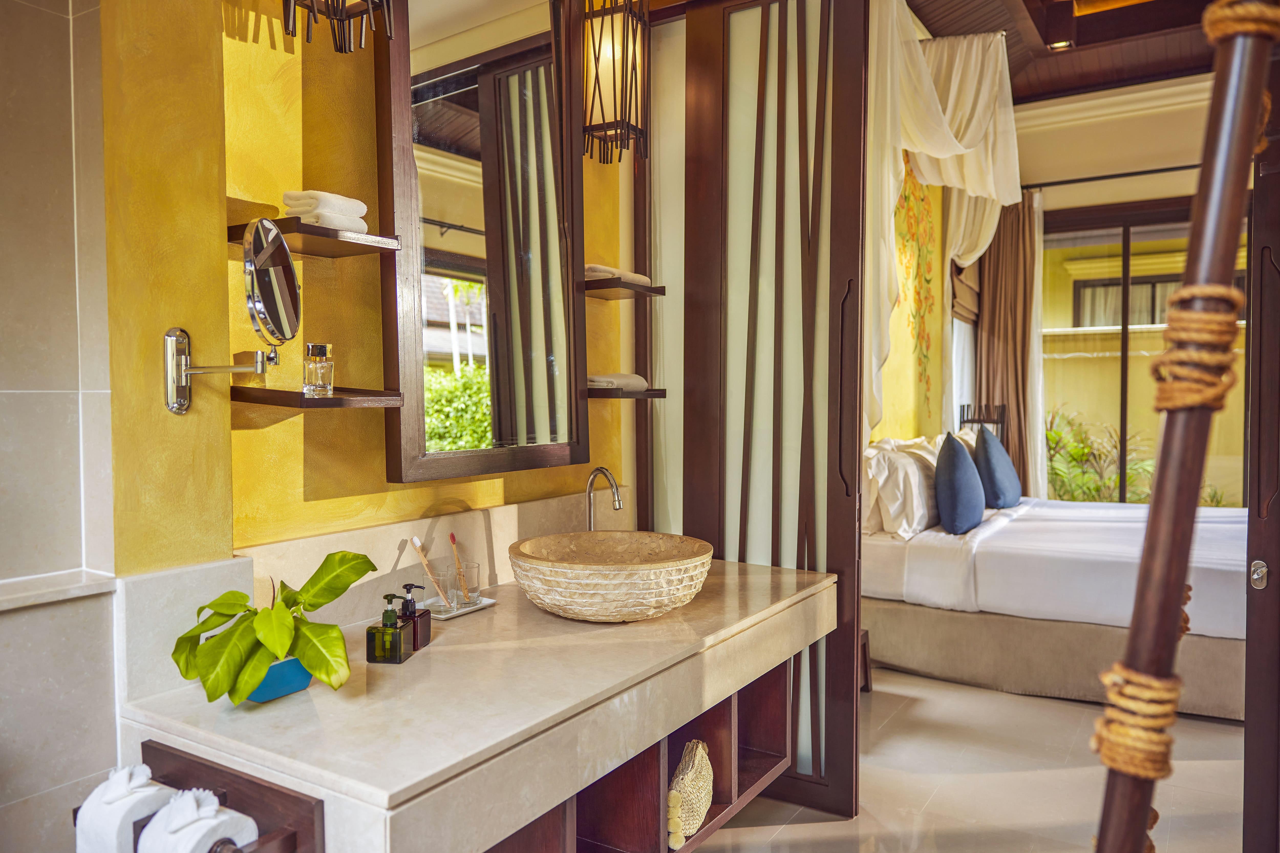 ภายใน ห้องพัก รีสอร์ท เกาะสมุย ประกอบด้วยห้องนั่งเล่นแยกเป็นสัดส่วน พร้อมโซฟาเบด เตียงคิงไซส์ เตียงอาบแดด เครื่องชงเอสเปรสโซ ห้องแต่งตัวแบบวอล์กอิน โทรทัศน์จอแบน และฝักบัวเรนชาวเวอร์ เพลิดเพลินกับมินิบาร์ฟรี และบริการอินเทอร์เน็ตไร้สาย (Wi-Fi) ฟรีตลอดการเข้าพัก